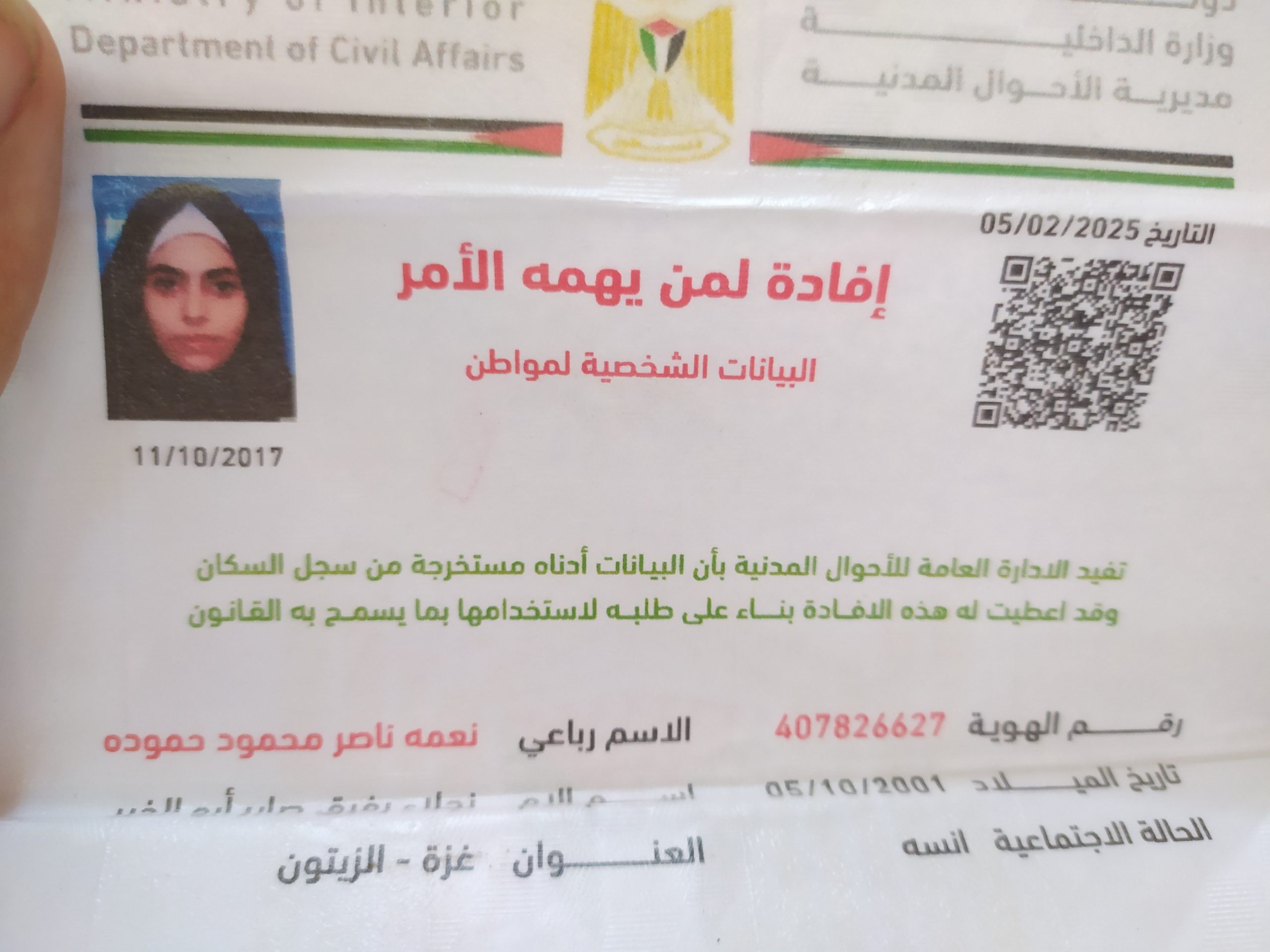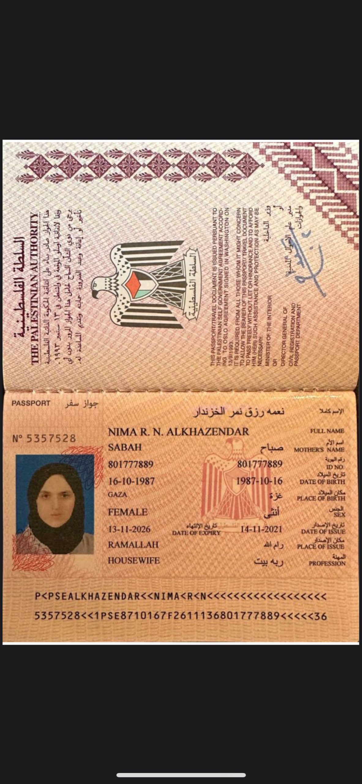 Nationality:Palestinian Territory